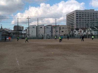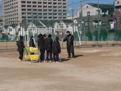 太陽が輝き始めましたが、風が強くグラウンドは冷え冷えです。