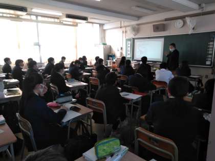 教室は日当たりが良く、上着を脱いでいる生徒もいます。