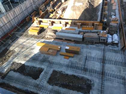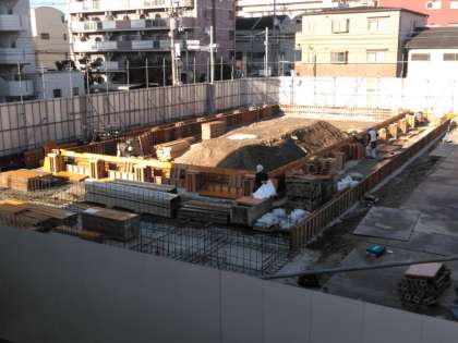 骨格の鉄筋や、コンクリートパネルが次々に張られて行きます。