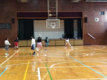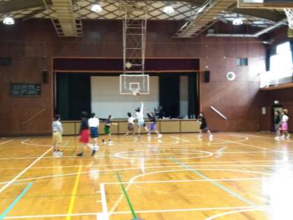 体育館では、女子バスケットボール部が頑張っています。