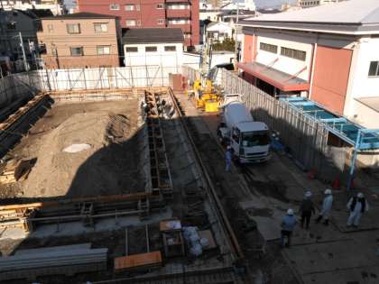 本日は、ミキサー車など大型車輛が入ってきました。 今日も安全第一でよろしくお願いします。