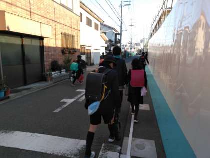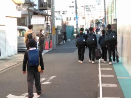 風が強く、とても寒い中、児童さん、生徒たちが登校してきました。
