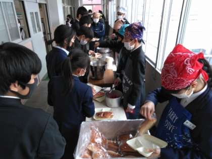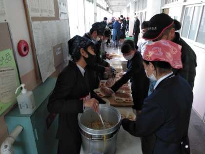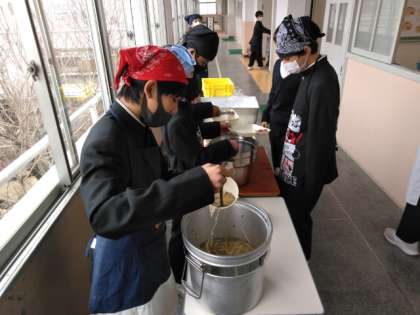 午前の授業が終了し、給食の配膳時間となりました。