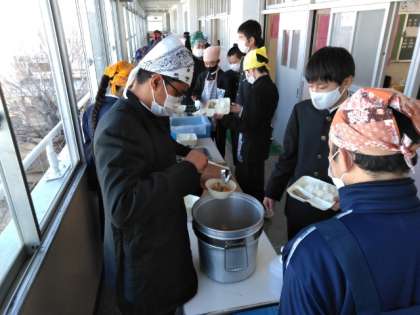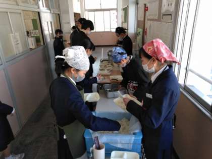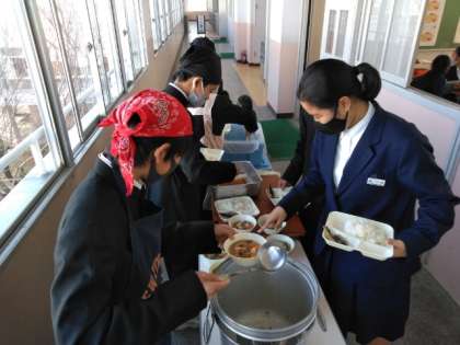 午前の授業が終了し、給食の配膳時間となりました。
