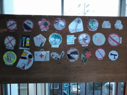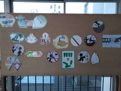2年生の美術作品「ピクトグラム」が展示されています。