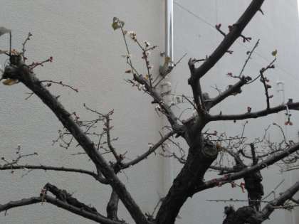 校庭の寒梅です。