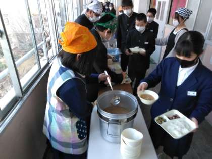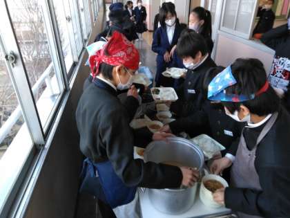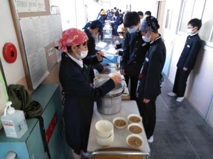 4時間目の授業が終了し、給食の配膳が始まりました。