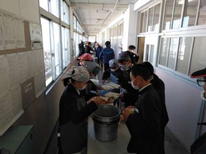 午前の授業が終了し、給食の配膳時間となりました。