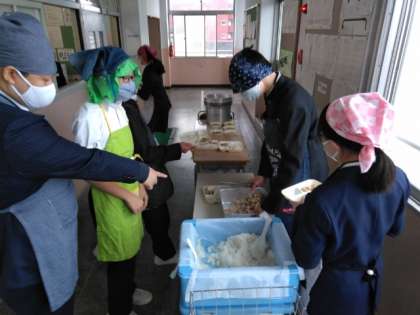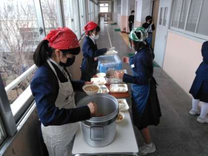午前の授業が終了し、給食の配膳時間となりました。