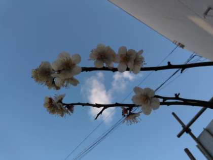 校庭の梅の花が、ほぼ満開となりました。