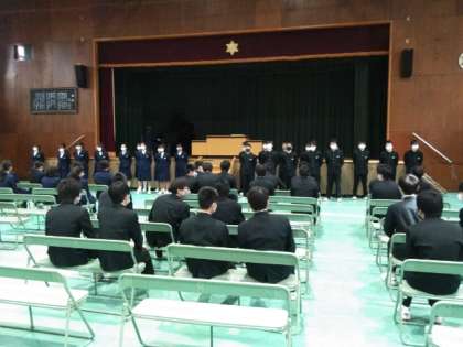 クラスごとに、卒業の歌を披露しています。
