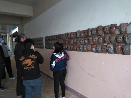 本日、3年生の美術科卒業作品である陶芸の自画像が、