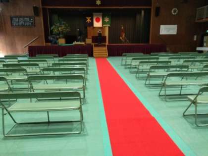 後輩たちの手によって、式場準備、清掃活動が終了しました。