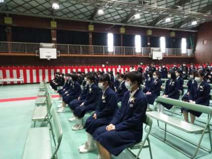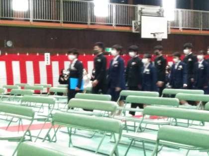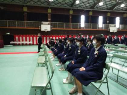 在校生や保護者の拍手を浴び、みんな緊張した面持ちです。