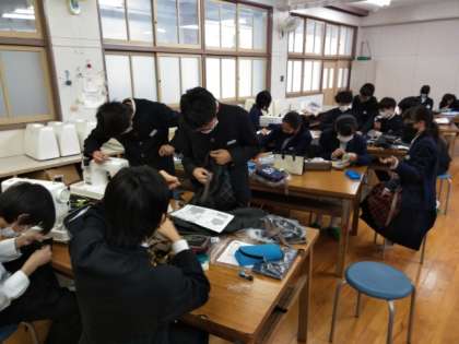 1年生の家庭科の時間。エプロンの作成です。