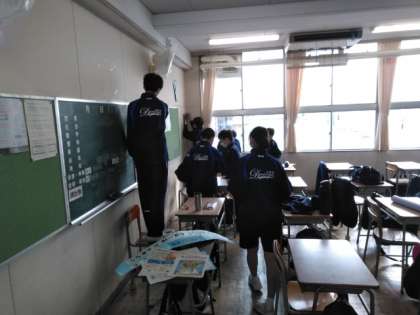 教室の掲示板、入り口のマットなど、すみずみまでキレイにしてくれました。