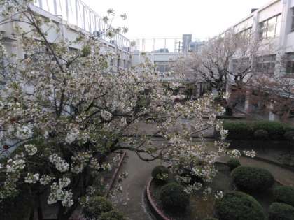 中庭の大領桜が、雨に叩かれだいぶ散りました。