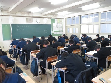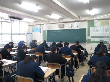 本日は、1・2年生 学年末テスト2日目です。1年生の1時間目 家庭科の受験の様子です。みんな真剣な表情でテストに取り組んでいました。結果が楽しみです。保護者の皆様にはお子さんが後日家庭に持ち帰る解答用紙の点検をよろしくお願いします。