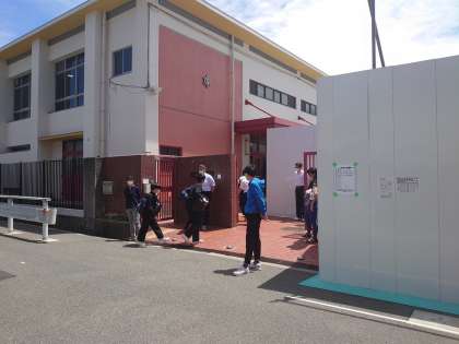 生徒のみなさんは、そのような中でも、いつも通り元気に登校してきました。