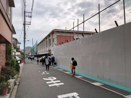 同じ時間に大領小学校の児童のみなさんも登校するので、画像のように、本校生徒・大領小学校児童が本校前(大領小学校前でもありますが)の道路を一緒に歩く様子が見られます。