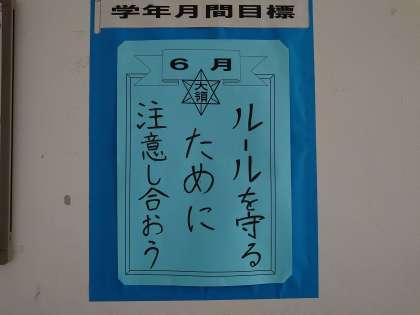 4月の各種委員会以降、昨日まで各種委員会がなかったので、5月があと少し、ということもあり6月の目標として掲示しています。