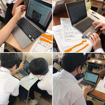 3年生は、総合の取り組みで高校についての調べ学習を行っています。公立高校、私立高校、専修学校、大阪には200を超える高校があります。その中からたった一つ、自分が目指したい高校をどこにするのか・・・。何から調べたらいいのか分からない!では始まらないので、まずは大領中学校の先輩方が進学した高校など、いくつかピックアップして、タブレットを使ってホームページで調べています。