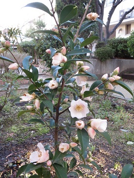 中庭には、椿の花が咲いています。もうすぐ桜の花も咲き、春本番を迎えます。