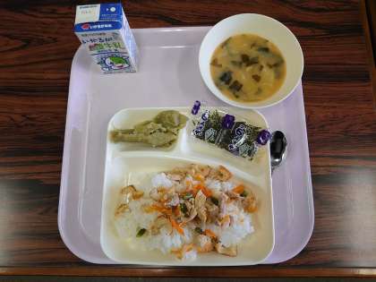 袋に入ったきざみのりはかやくご飯にかけて食べます。