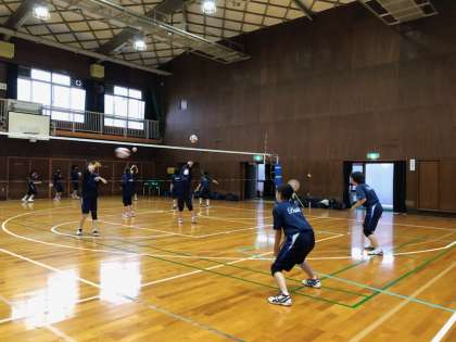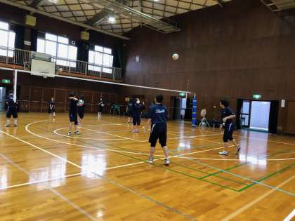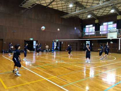 体育館の部活動の様子です。バレーボール部が練習しました。声を出しながらトス、レシーブ練習を行っていました。バレーボール部は、16名で活動しています。1年生がたくさん入部して、活気が出ています。