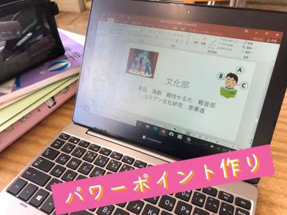パワーポイントには、アニメーションもつけたり、イラストにもこだわります。