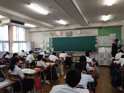 1年生の6時間目は英単語テストの勉強に取り組んでいました。