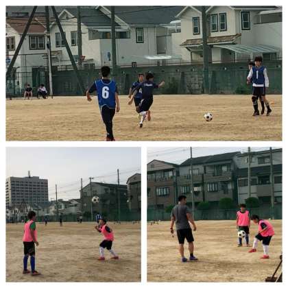 ミニゲームを行っている横で、1年生がリフティング練習を行っています。