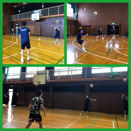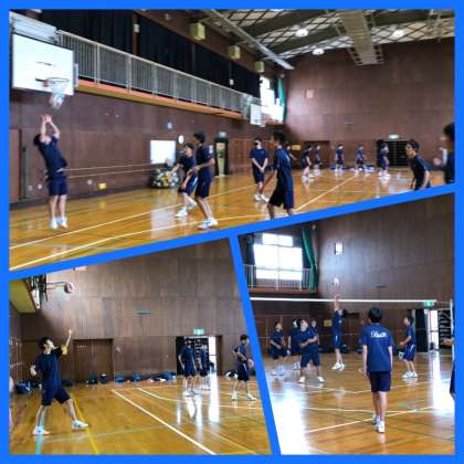体育館では、3年1、2組の男子が体育の授業でバレーボールを行っていました。
