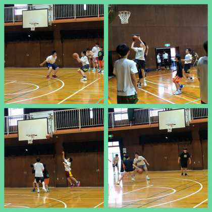 体育館では、もう半面で男子バスケットボール部が練習しています。