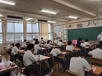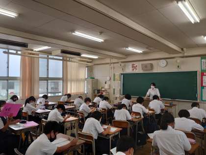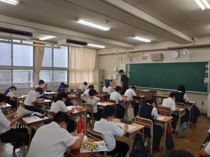 今日の6時間目、各学年でさまざまな取組を行いましたが、期末テストに向けた学習計画の作成に取り組んだ学年が多かったです。