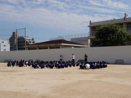 今日はその練習を兼ねて、運動場で取組を行いました。