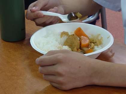 いよいよ自分たちのつくったカレーを食べます。さて、味はどうでしょう?