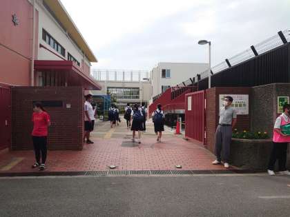 登校してくる生徒のみなさんも、最初は工事中に通路になっていたところを通って校舎に向かっていましたが、先生方に促され、広いスペースを通るようになりました。