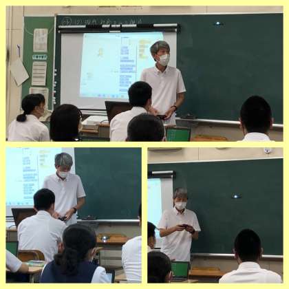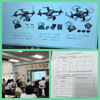 技術の授業で、先生がドローンの操作を教室で披露しました!!