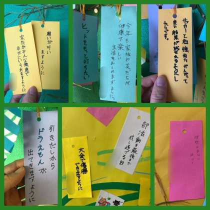 飾っている笹の葉にも、素敵なお願いごとがたくさん飾られました。