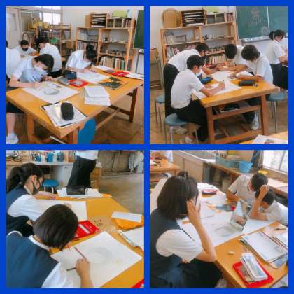 陰影をつけたり、カラフルにしたり…それぞれの個性が光ります。完成が楽しみですね。