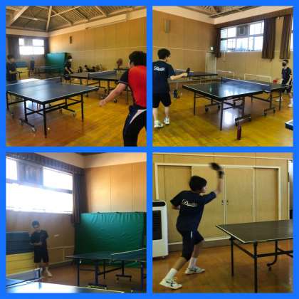 卓球部が練習しています。蒸し暑い格技室ですが、暑さに負けず生き生きと練習しています。