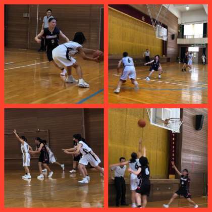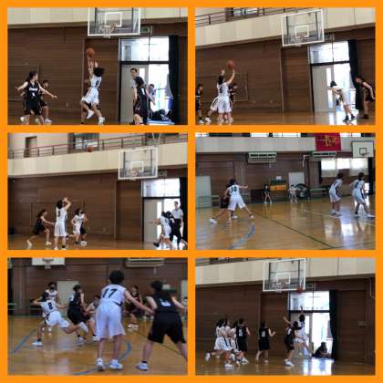 先制点をゆるしてしまいましたが、3年生の執拗なディフェンス、ルーズボールやカットプレーからの速攻、コンビネーションからの3ポイントシュート、センタープレーが見事に決まり、前半は57対15で折り返しました。