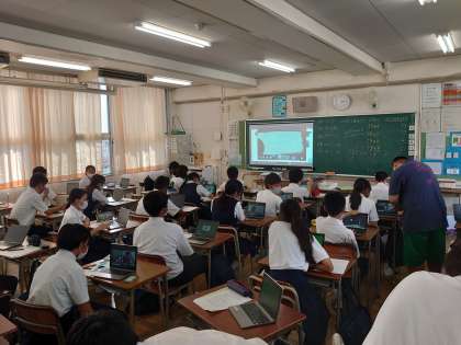 今日の6時間目、2年生で双方向オンライン学習(通信)に向けた取組を校内で実施しました。