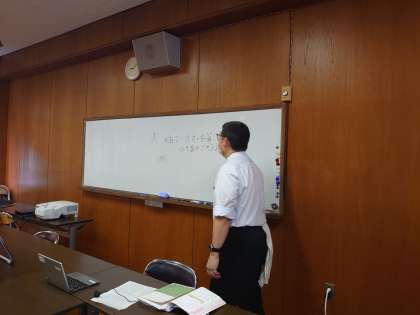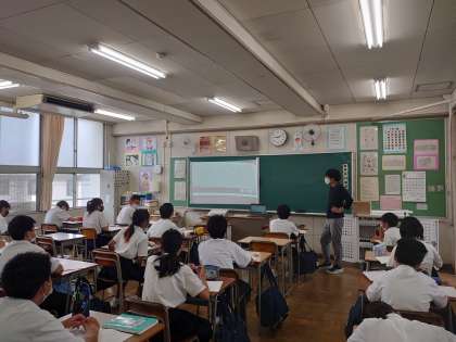 会議室で行われる授業の映像を授業で視聴し、先生からの発問に対し生徒が教室で答える、という形式で行われました。教室では別の先生が待機し、生徒の支援や不具合に対応するようにしました。