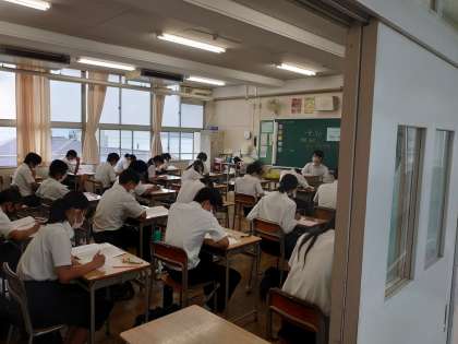 本校の3年生も1時間目の国語からスタートして5時間目の英語までテストに取り組みます。