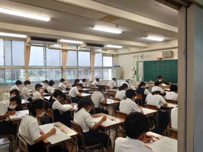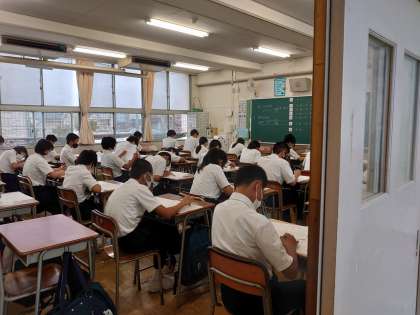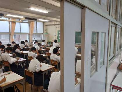 難しい問題に向かっているのか、ペンを握りしめたまま問題をじっと見つめ、その後、答えがわかったらしく、解答用紙に一生懸命書き込んでいる生徒もいました。