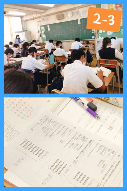 2-3は国語。漢詩について学習しています。教室では中国語verの漢詩がCDで流れています。春眠暁を覚えず…みんなも一度は聞いたことのあるフレーズだと思います。