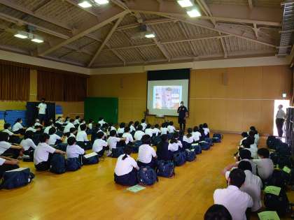 2年生では1日目の夜に行う室内オリンピックの種目説明もありました。予行練習として一部種目を実施し、生徒のみなさんも盛り上がっていました。
