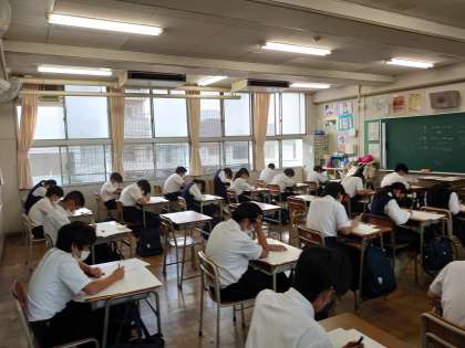 3年生は5教科、1・2年生は7教科のテストが実施されました。生徒のみなさんも一生懸命勉強し、テストに臨んでくれたと思います。